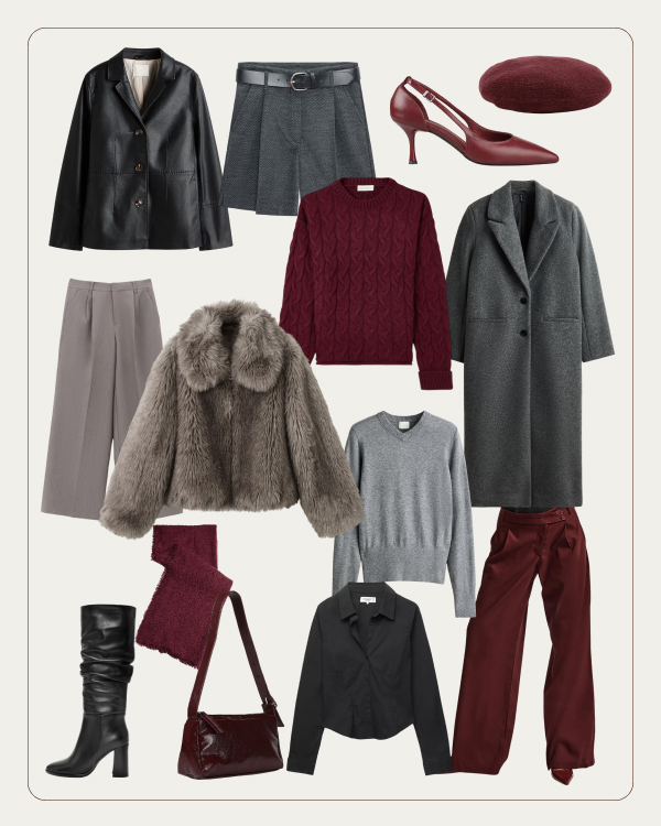 Bazı renkler vardır, bağırmaz ama odadaki en güçlü etkiyi yine de onlar yaratır. Bordo, gri ve siyah tam olarak o üçlü. Bu kapsülde her parça, “fazla çaba harcamadan şık olma” halinin bir temsilcisi gibi duruyor. Akışkan pantolonlar, net kesim ceketler, yumuşak dokulu trikolar… Hepsi birbiriyle kolayca eşleşiyor, çünkü bu gardırop kararsız sabahları değil, net stil anlarını seviyor.