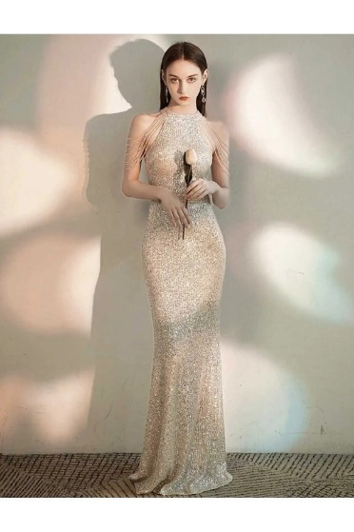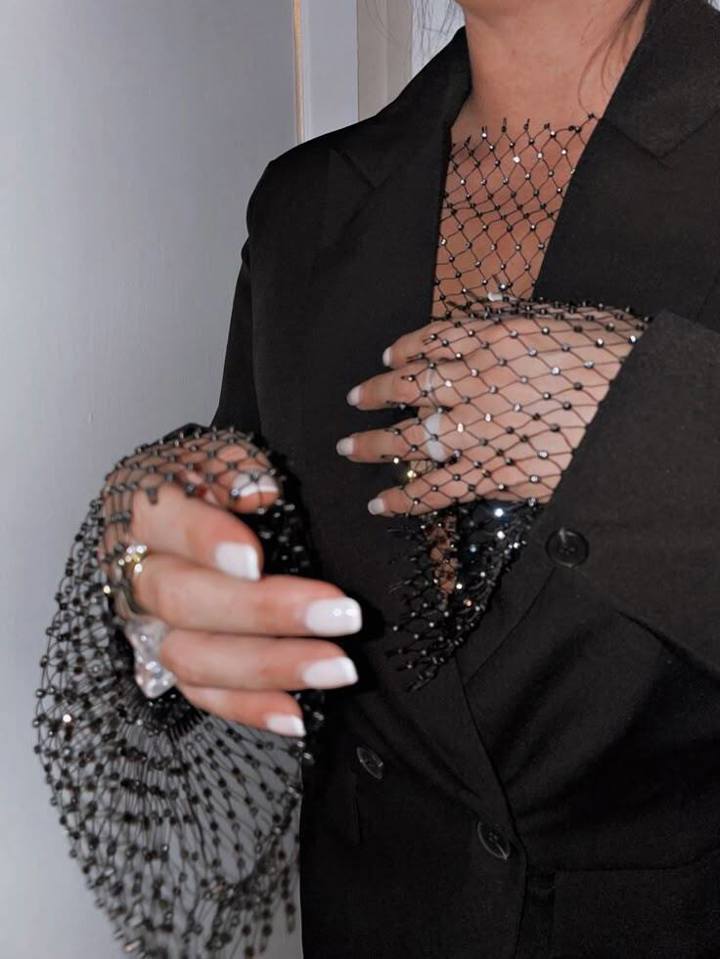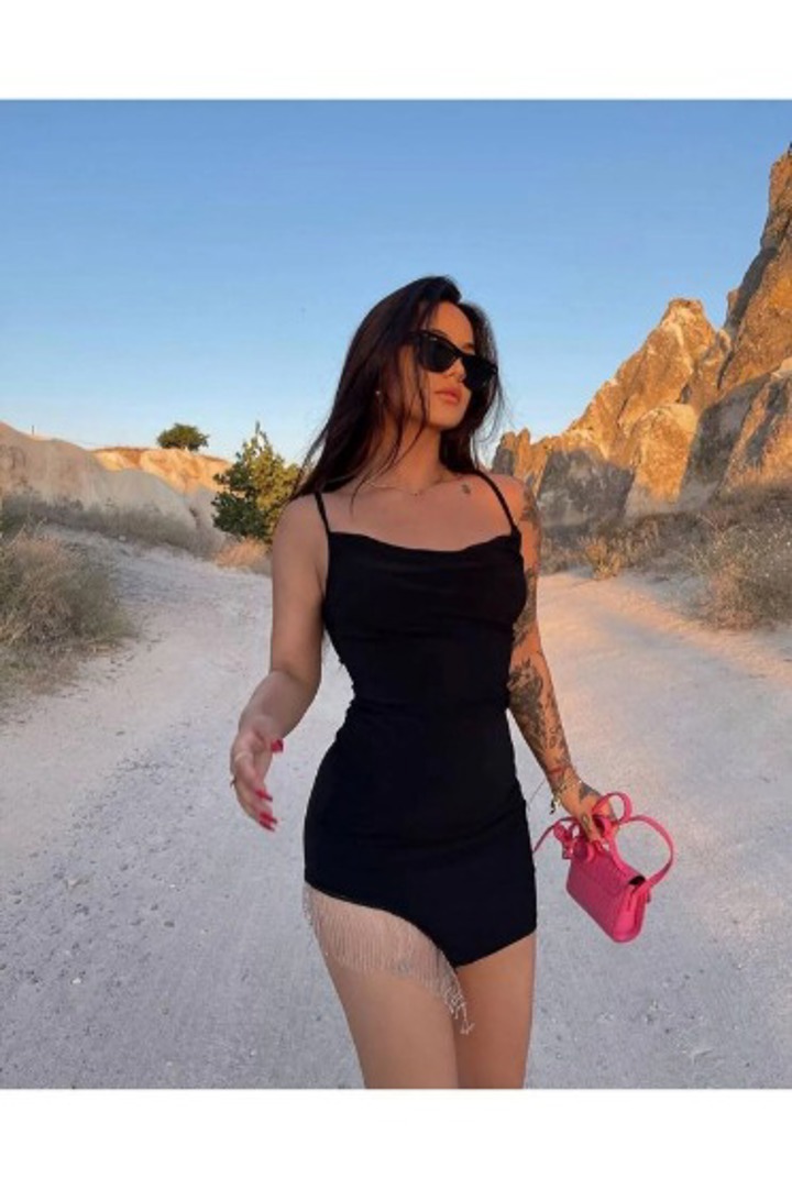 Taşlı file elbise