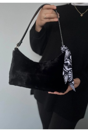 Benzer siyah kürk çanta