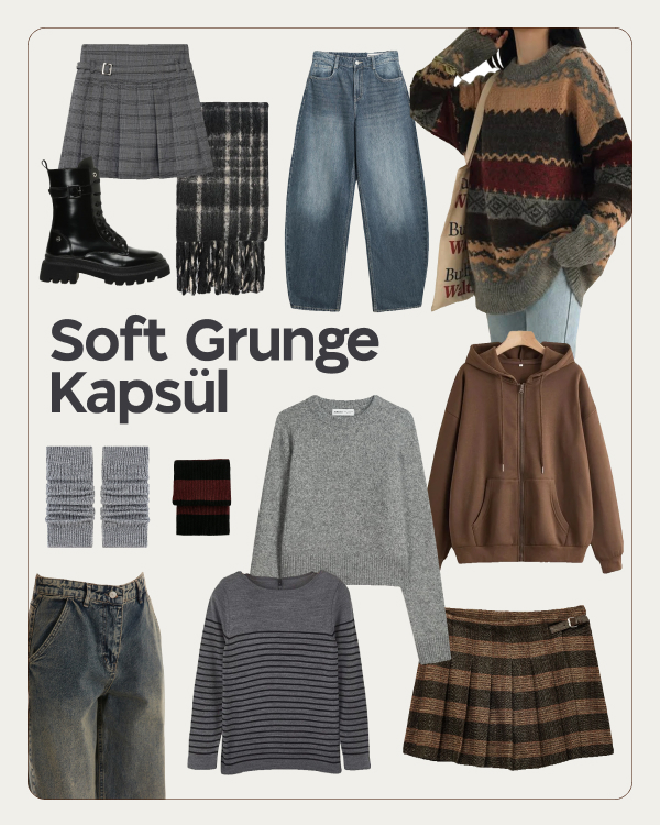 Soft grunge, 90’lardan gelen o dağınık ve asi enerjiyi alıp biraz daha sade, günümüze uyarlanmış bir hale getiriyor. Tarzın özünde hâlâ o “umursamaz” hava var ama daha dengeli, daha şehirli bir şekilde. Soluk tonlar, yumuşak dokular ve rahat kesimlerle oluşturulmuş bu görünüm; fazla çaba harcamadan farklı görünmek isteyenler için birebir. Liste boyunca da bu tavrı koruyan, sertle yumuşağın dengede olduğu parçalar öne çıkıyor.