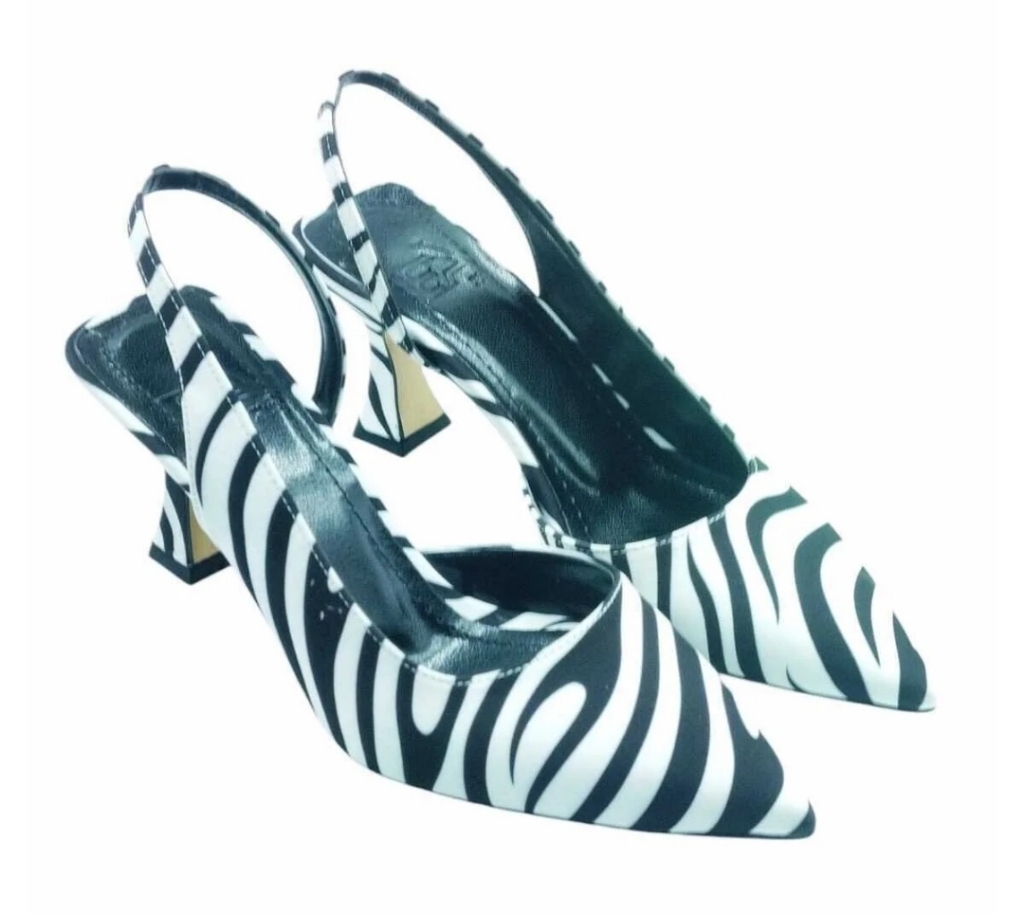 Sivri Topuklu Zebra Print Topuğu Açık Ayakkabı