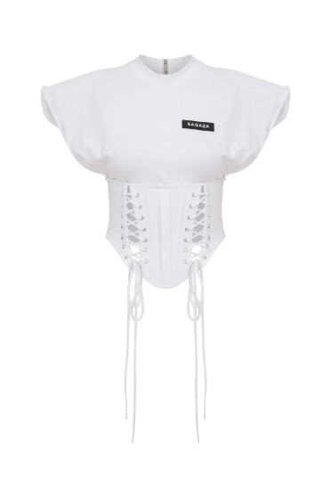 Beyaz Korse Detaylı Tişört