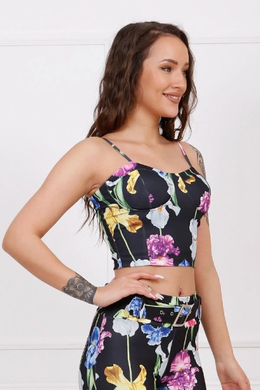 Çiçek Baskılı Siyah Bluz