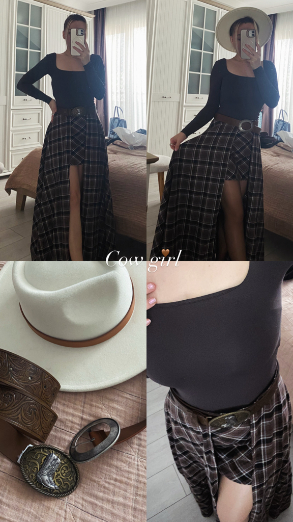 pileli ekose etek kombini 🤎