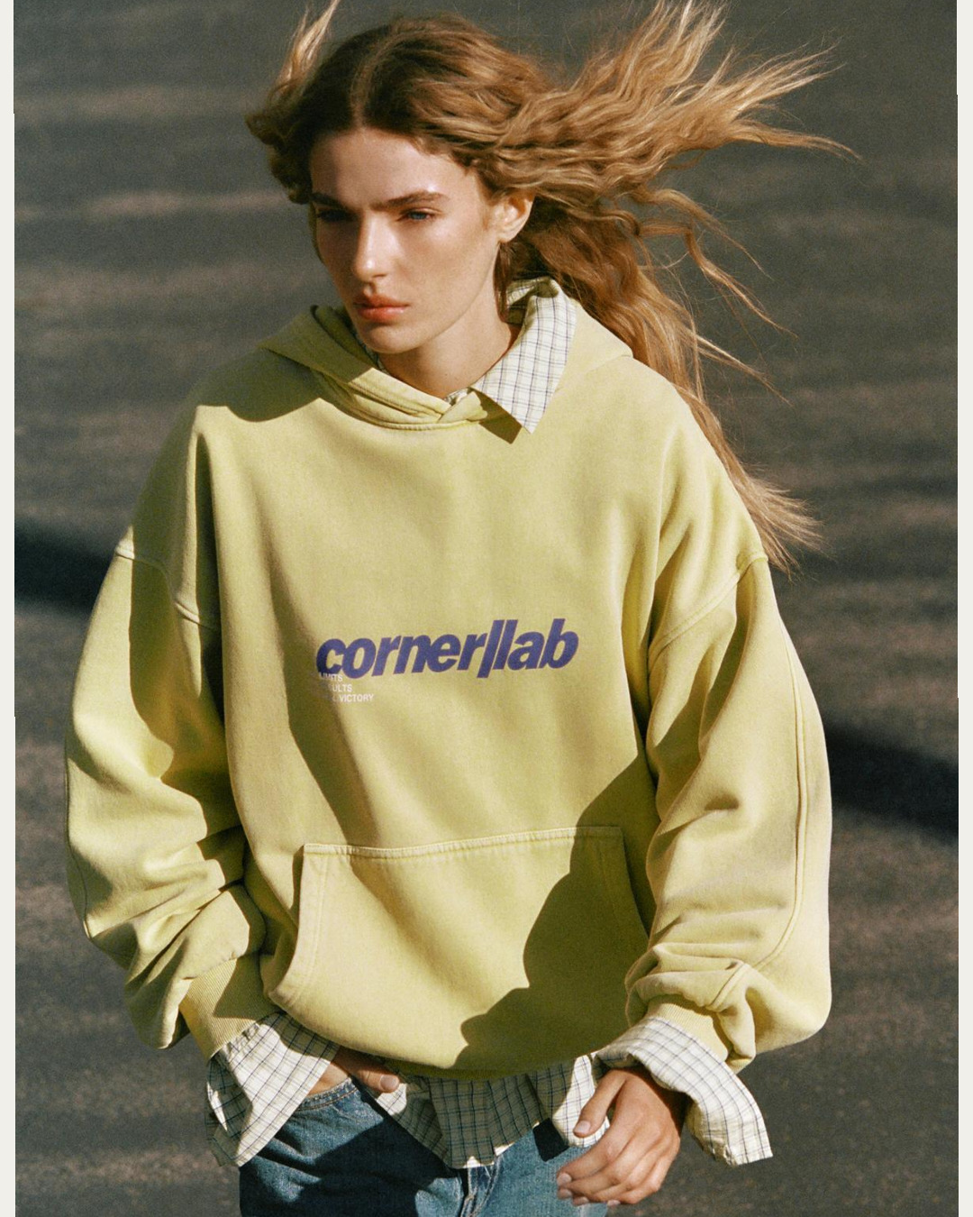 Sarı grafik kapüşonlu sweatshirt