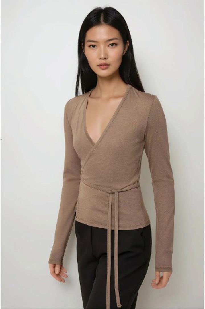 Kruvaze bağlama detaylı soft kumaş bluz
