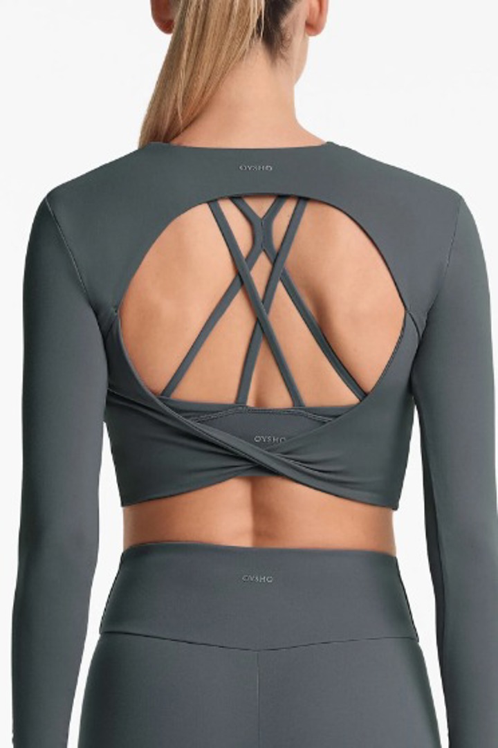 Comfortlux sırtı açık uzun kollu crop tişört