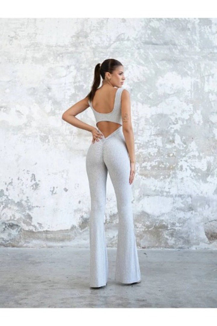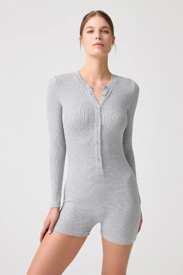 Melodi gri melanj fitilli uzun kollu tulum