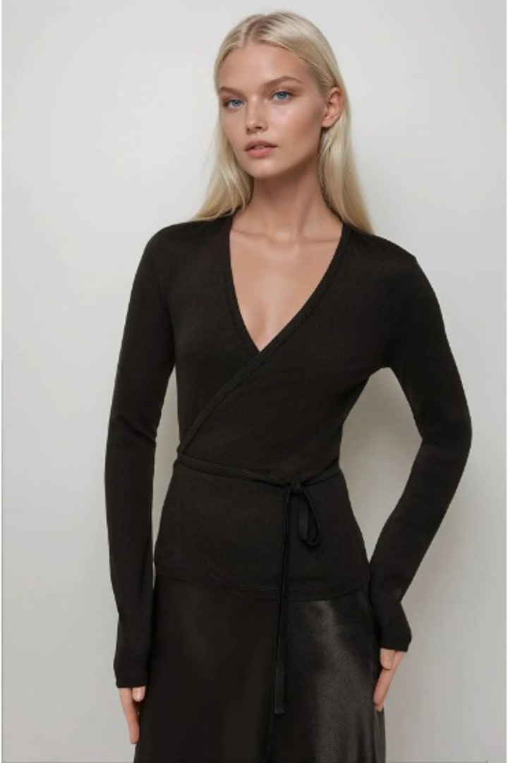 Kaşkorse siyah kruvaze bluz