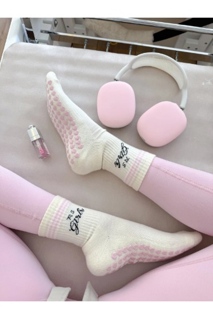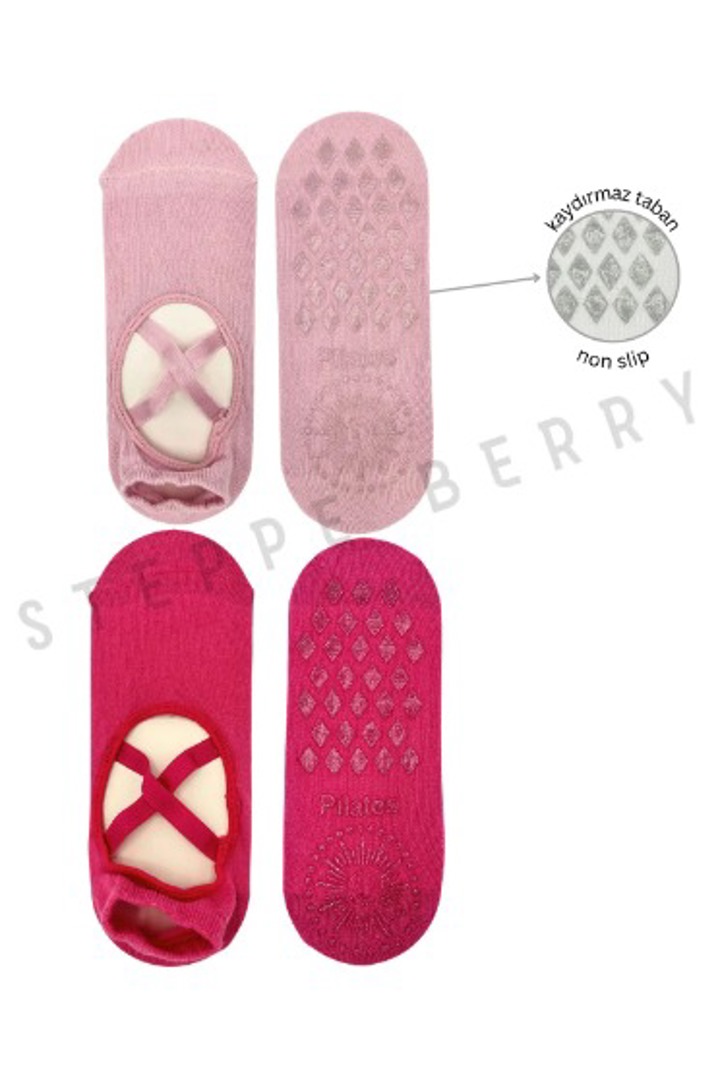Pembe kalpli kaydırmaz pilates çorabı