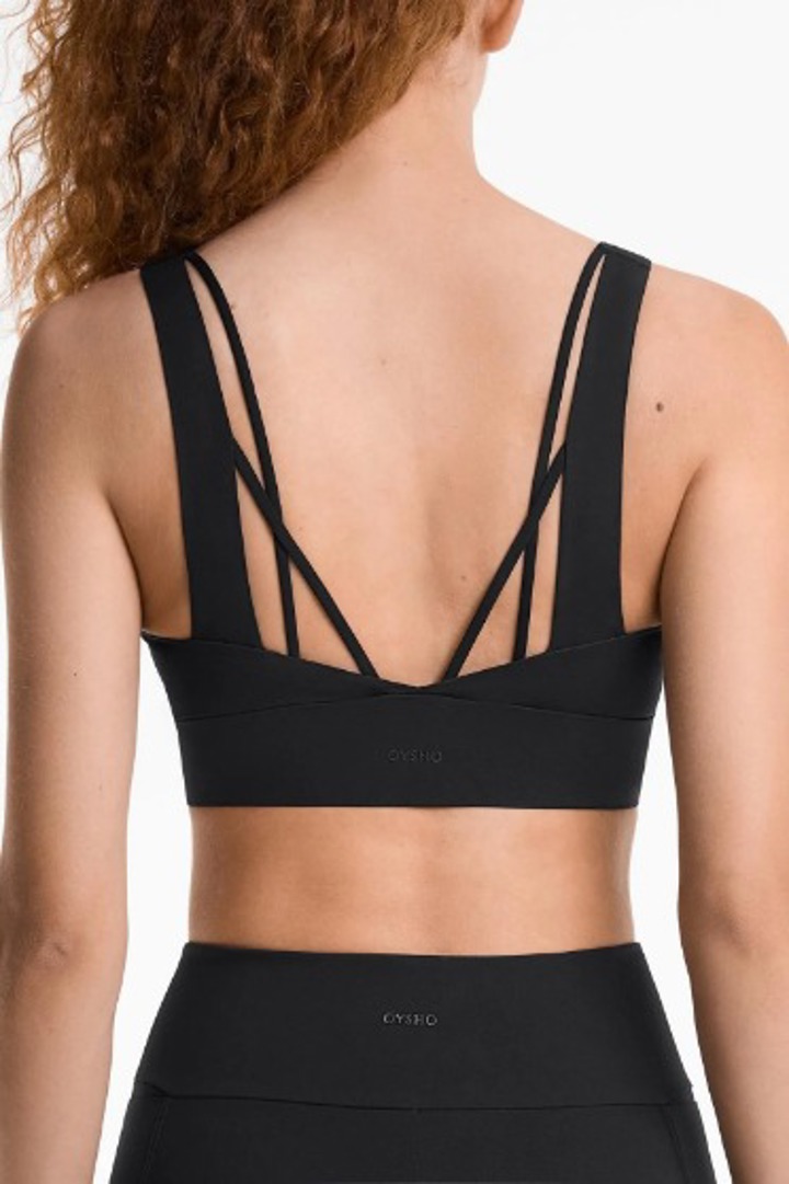 Siyah destekli sırt detaylı kaplı spor sütyen