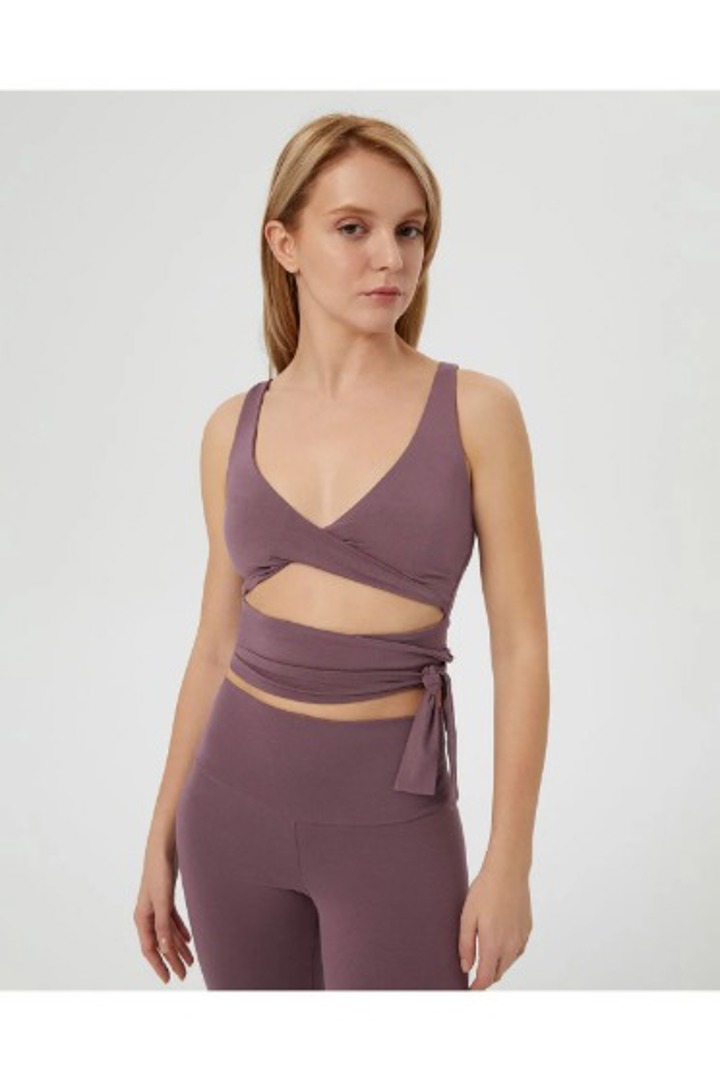 Önü büzgülü belden bağlamalı spor büstiyer