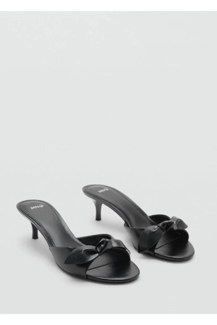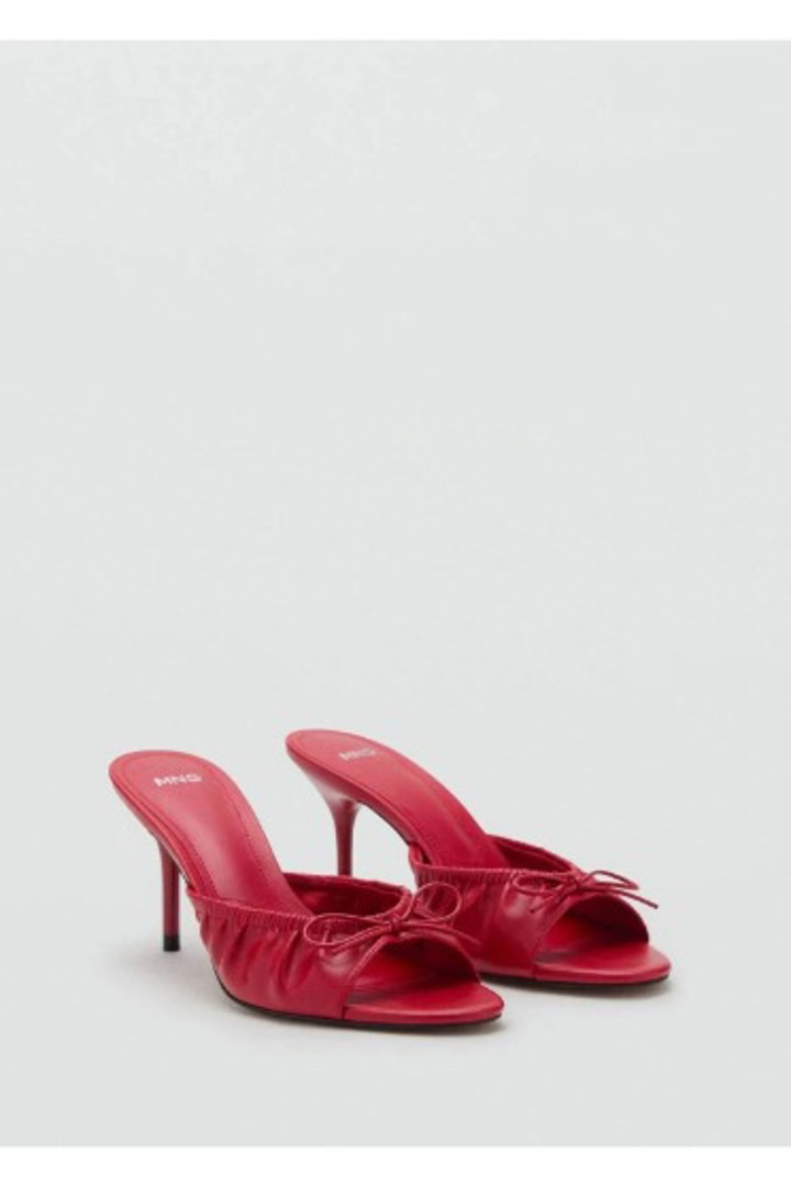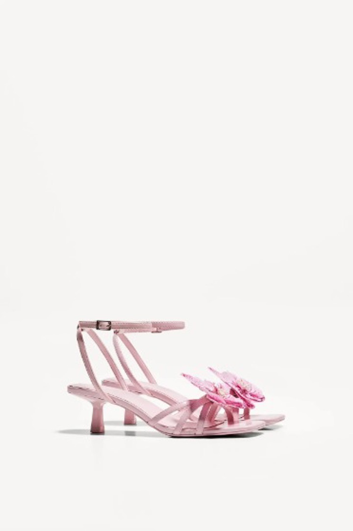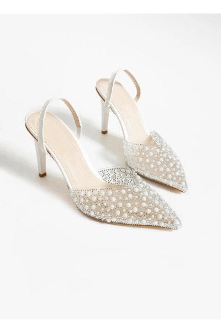 Çiçek detaylı kısa sivri topuk ayakkabı