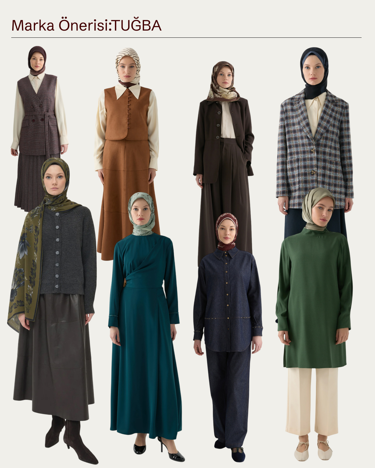 Zarif, ölçülü ve zamansız bir stil arayanların güvenle yöneldiği markalardan biri Tuğba. Klasik tesettür silüetlerini yumuşak kumaşlar, akıcı formlar ve dengeli renk paletleriyle günümüze uyarlıyor. Kombin yapmayı kolaylaştıran takımlar, uzun elbiseler ve şık dış giyim parçaları sayesinde hem günlük hayatta hem özel anlarda zahmetsiz bir şıklık sunuyor. Gösterişten uzak ama her zaman özenli bir görünüm isteyenler için gardırobun en sağlam köşelerinden biri.