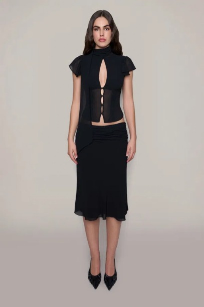 Sushi Date’e giderken Valentine Matcha Girl, siyah dantel bluz ve pileli mini etekle modern-romantik bir siluet kurar; bordo fiyonk ve çanta tatlı bir dram ekler. Kalpli takılar flörtöz ışıldar, topuklular adımlarına “gece benim” özgüveni katar. Elindeki Allure Matcha, şeftali-kayısı aromasıyla ipeksi yeşili buluşturur; ferah ama baştan çıkarıcı. Bu gece plan net; zarafet, biraz oyun ve bolca Allure.