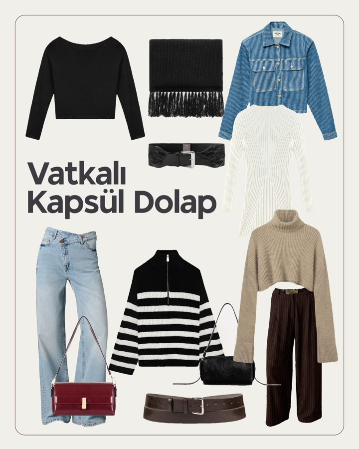 Sonbaharın sıcak tonlarından ilham alınarak hazırlanan bu kapsül dolapta, Vatkalı’nın zamansız ve modern parçaları bir araya geliyor. 🍂 Hem gündüz hem de akşam stiline uyum sağlayan, minimal ama güçlü tasarımlar farklı kombinlerle yeniden kullanılabiliyor. Sezonun ruhunu yansıtan bu seçki, sonbaharı stil sahibi ve kolayca taşınabilir bir gardıropla karşılamak isteyenler için hazırlandı. ✨