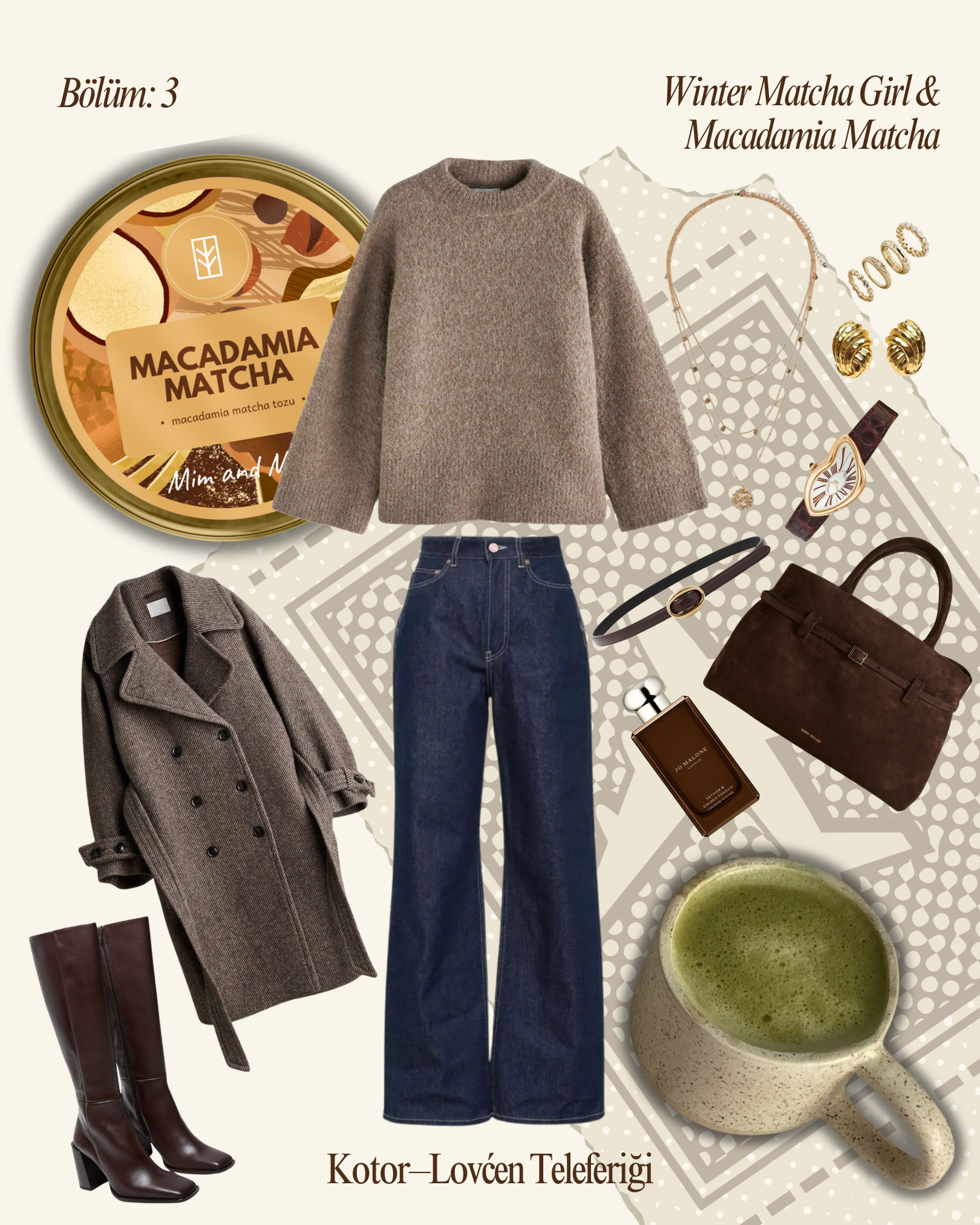Winter Matcha Girl, Kotor’dan Lovćen’e yükselirken kış stilini manzarayla aynı ritimde kurar. Toprak tonları güven verir, lacivert dokunuşlar zamansız zarafet katar. Yumuşak trikolar soğuğa değil, sakinliğe eşlik eder. Merkezde Macadamia Matcha: kremamsı fındık aroması, matcha’nın ferah dengesiyle birleşir. Bu an; doğayla hizalanmış, sessizce lüks bir kış deneyimi.