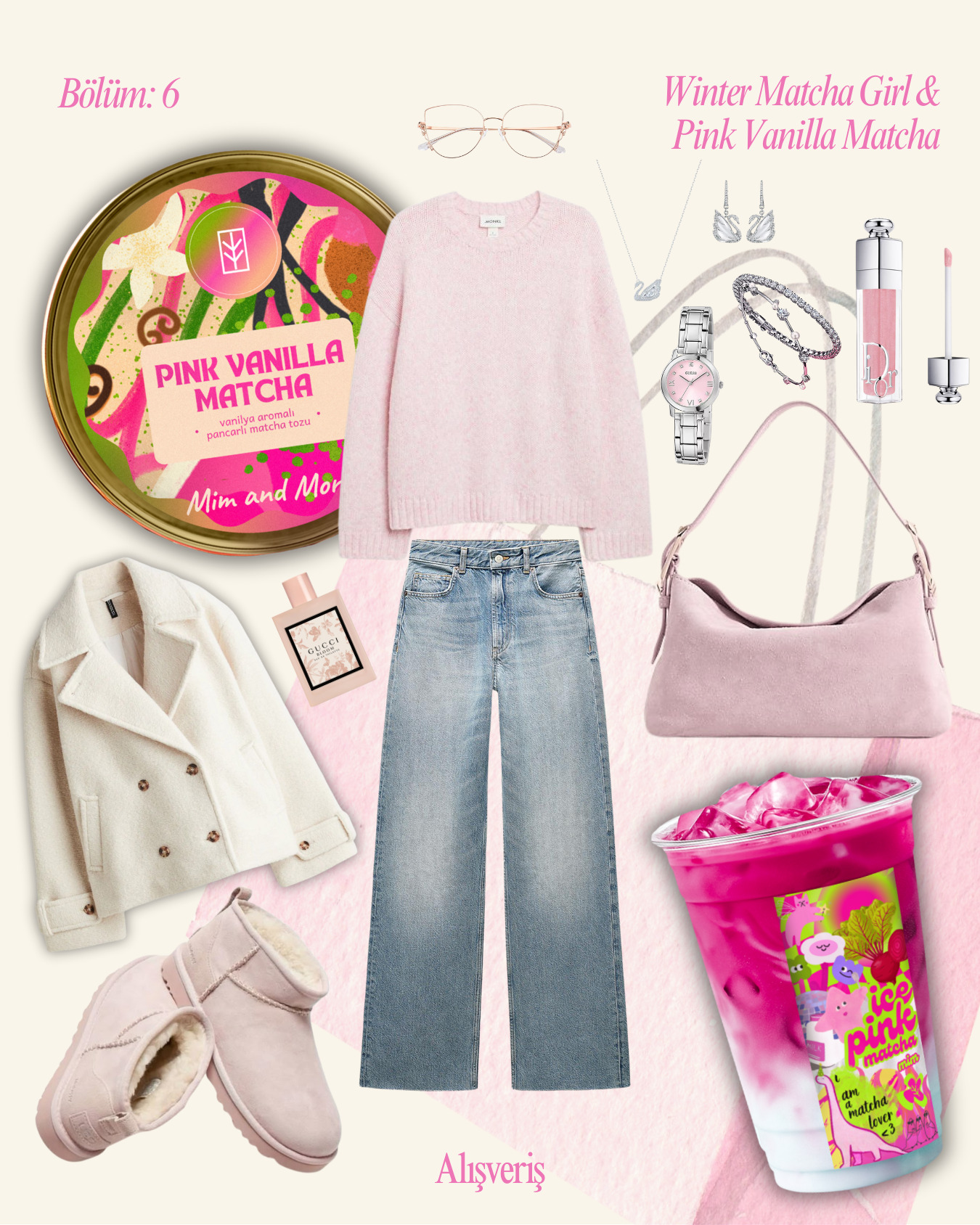 Kış güneşinin altında, Winter Matcha Girl bebek pembesi kazağını jean rahatlığı ve ekru ceketle birleştiriyor. Pembe aksesuarlarla tamamlanan stil, enerjik ve romantik bir hava yaratıyor. Günün keyifli molasında ise Pink Vanilla Matcha, vanilya ve pembenin taze birleşimiyle tazelik sunuyor. Estetik, konfor ve huzur, alışverişin en stil sahibi anında Mim and More dokunuşuyla hayat buluyor.